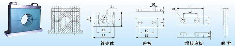 管夹体 | 盖板 | 焊接底板 | 螺栓 | |||||||||||||