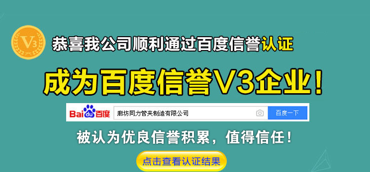 时光荏苒,岁月如梭。一眨眼的时间,华体网页版登录入口和百度即将走过第十一个年头。双方始终遵循诚信、合作、服务、奉献的原则,为广大用户提供高效便捷可靠地服务。合作期间,百度把同力管夹公司的信息带到了全国各地,让更多的用户知道了同力管夹公司的存在;同时密切关注着同力公司的诚信建设工作。本着让诚信的商人先富起来的原则,百度信誉对同力管夹做了信誉V体系认证,从初的V1级已获实名认证,开始积累信誉到V2级基础信誉积累,可接洽商谈再到后的V3级优良信誉积累,值得信任。同力管夹可谓是一步一个脚印,产品对得起良心。当然这一切都离不开广大用户的支持和厚爱,在接下来的日子里,同力管夹将一如既往地为用户提供贴心和诚信的服务,为构建和谐诚信社会贡献自己的力量。