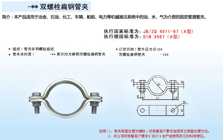产品特点:扁钢管夹安装简便快捷,是管道施工的优良产品。