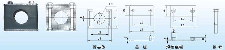 应用领域:本产品适用于冶金、石油、化工、车辆、船舶、电力等机械液压系统中的油、水、气为介质的固定管道。轻型系列管夹适用于中低压(PN≤8Mpa)管道固定。