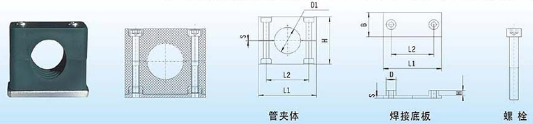 应用领域:本产品适用于冶金、石油、化工、车辆、船舶、电力等机械液压系统中的油、水、气为介质的固定管道。轻型系列管夹适用于中低压(PN≤8Mpa)管道固定。